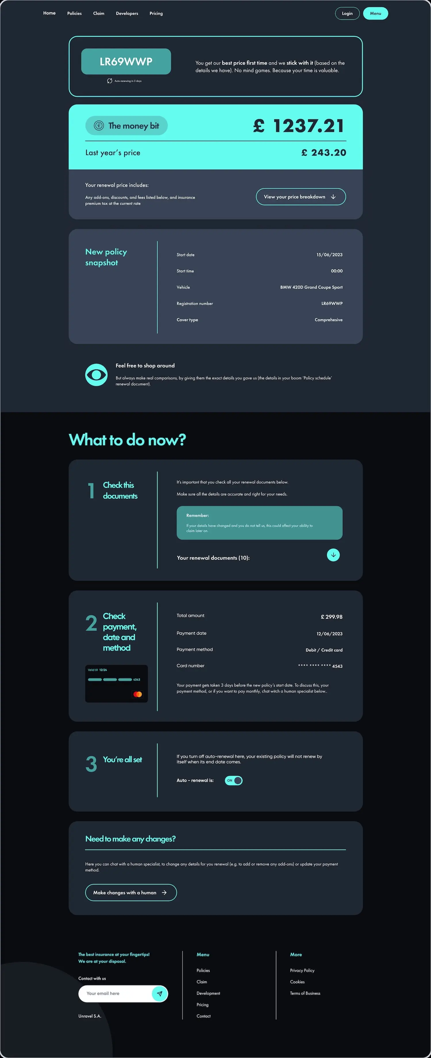 Kundendienst mit Selbstbedienung nach Abschluss einer Kfz-Police.